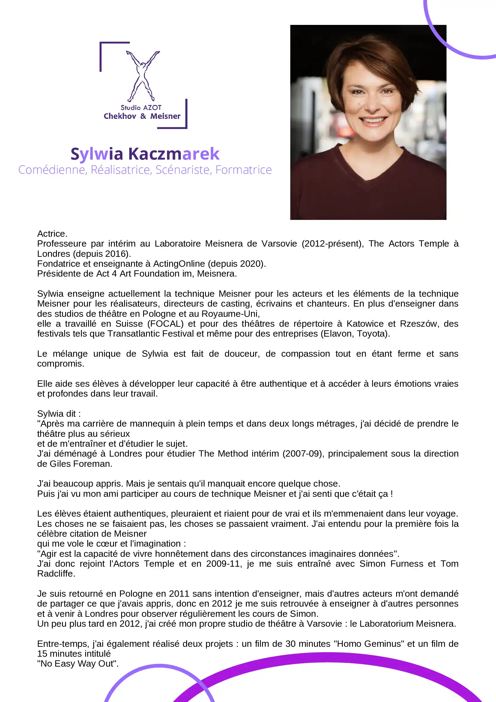 Le Studio AZOT focalise sa recherche sur l’authenticité. Nous avons la conviction profonde qu’elle est la clé pour être vivant et accéder à ses propres ressources intérieures, en dépit des peurs qui peuvent tirailler « l’acteur-être humain ». Après avoir longtemps cherché, la méthode Michael Chekhov et la méthode Meisner que nous enseignons nous ont paru répondre le mieux à cette exigence. Elles permettent, chacune à sa manière, de répondre à la quête de beaucoup d’entre nous : un désir profond d’expression pleine, spontanée et authentique.